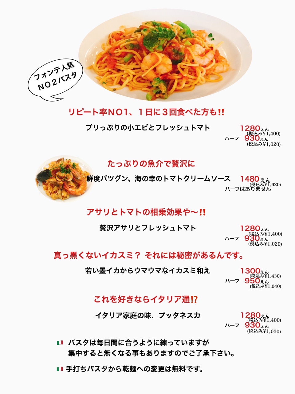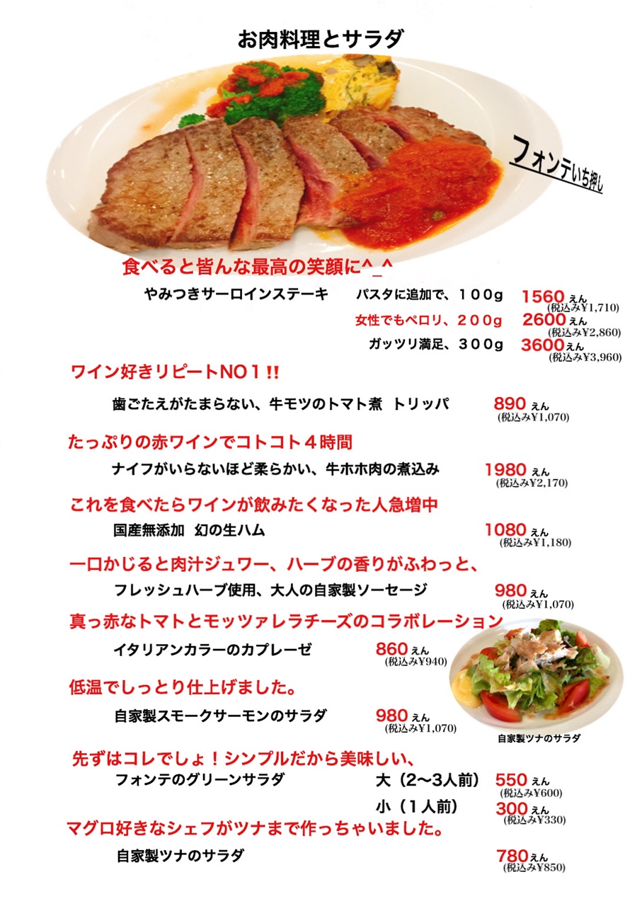 フォンテおすすめの料理ですので ぜひ一度ご賞味ください(24.06 現在の料金 税抜き表示)